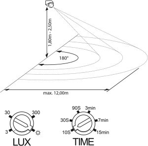 - نطاق الكشف: 12 م (عند التثبيت على ارتفاع 3 م كحد أقصى).